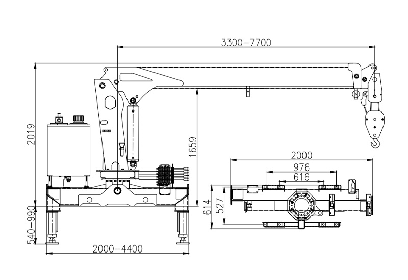 | 9 | 前支腿跨距* | mm | 2000-4400 |