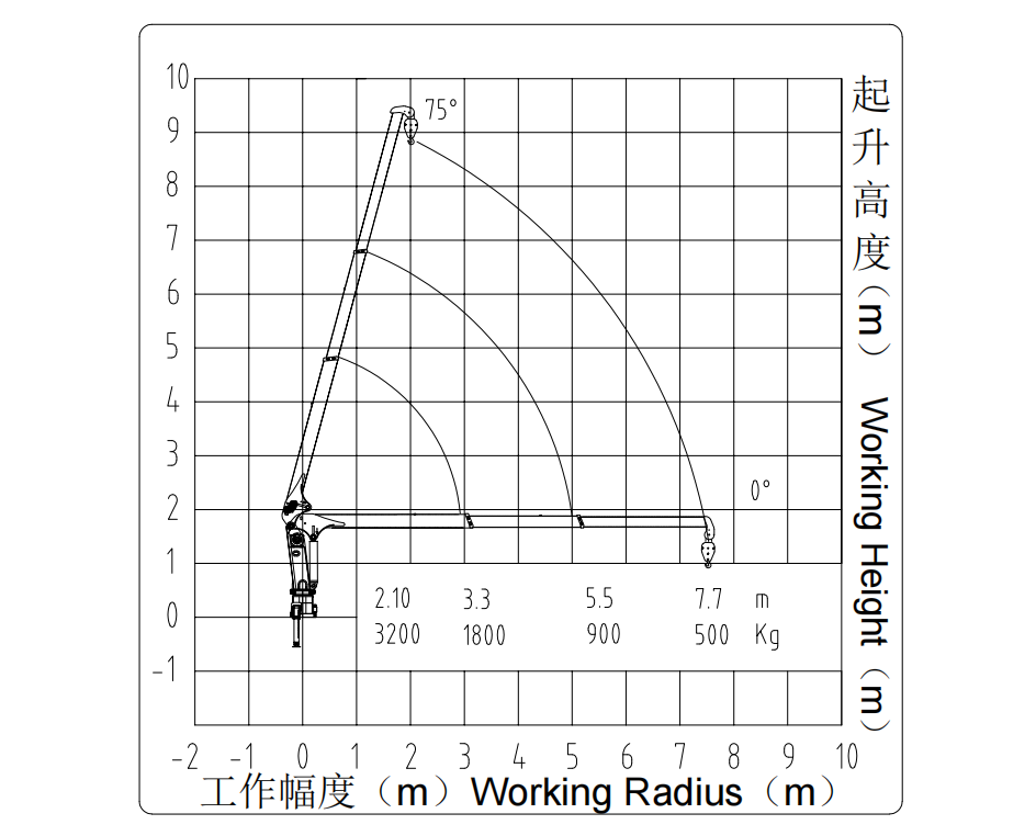 | 工作幅度(m) | 不同臂长最大起升载荷(kg) | ||